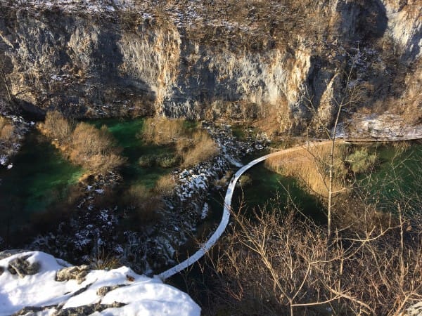 世界遺産プリトヴィツェ国立公園、谷の上から。降りると凍った滝なども。