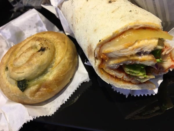左のパンはオリーブのペーストがたっぷり練り込まれています。うまい!