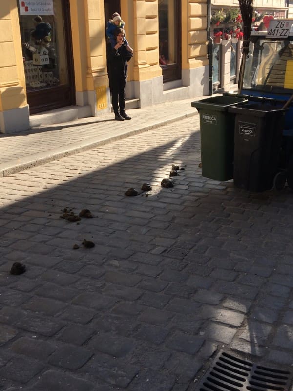 ザグレブの人気の見世物の一つに衛兵の交代式があり、衛兵と馬が行進するのですが、ちょうど行進の写真を撮影する邪魔にならないような距離感で清掃車が後からついてきていて、馬の落とし物などを清掃員が急いで飛び降りて掃除していくその手際の良さに関心しました。