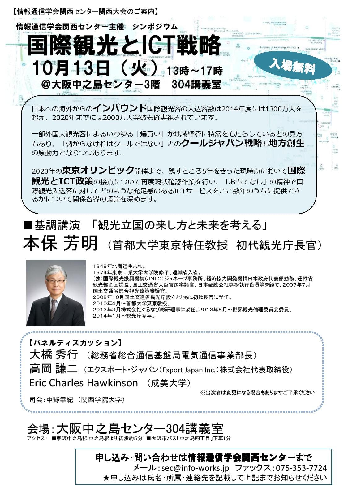 お問い合わせは、チラシに記載している情報通信学会関西センターまでメールもしくはFAXでお願い致します。
