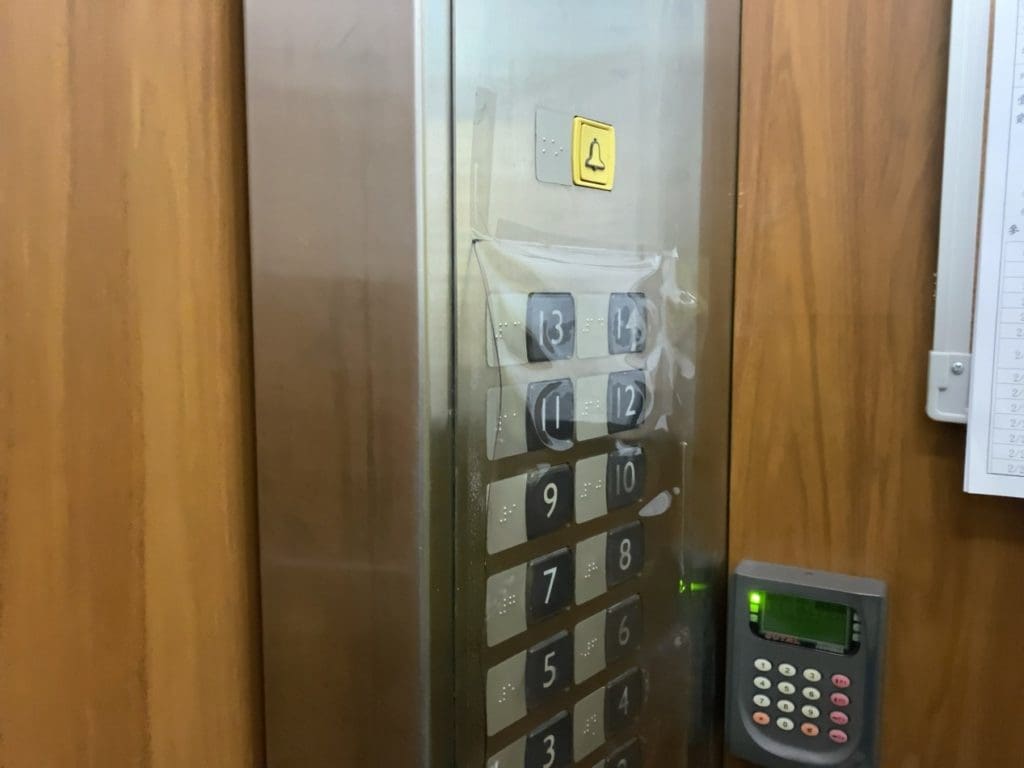 台湾は、外国からの観光客がいないということ以外は、普段と変わらないようです。公共施設では、高い水準の衛生管理が保たれていました。お店や店長は普段より気を使って定められた方法で清掃を行っています。例えば、ほとんどのエレベーターでは、ボタンの上にシールが貼られ、清掃しやすいよう工夫がされています。