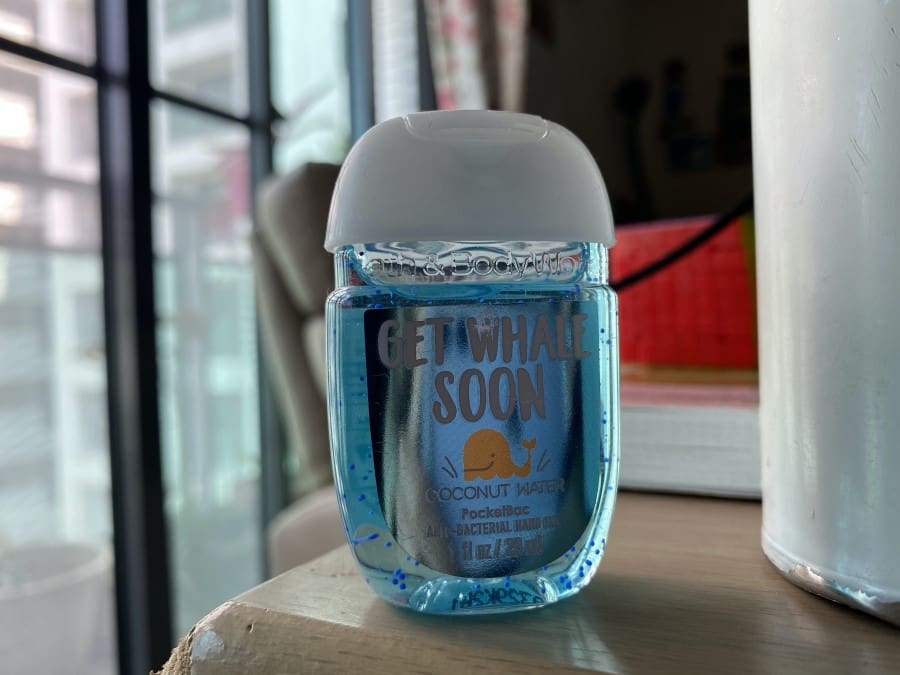 手を清潔に保つように、このような手指消毒剤を持ち歩き、手を洗えない時に使っています。