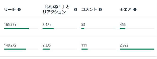 SNSの場合、フォロワーの急増が最も分かりやすい実績になります。それぞれの投稿のエンゲージメントも高く、いいね、シェア、保存が多い結果も見られます。最後に、非常に重要なのはユーザーからのコメントです。フォロワーやいいねとともにコメントが増加する傾向もありますが、コメントの内容も非常に重要です。投稿内容は、実際役に立つ情報として評価されていれば、アルゴリズム上評価されるだけでなく、ユーザー側からもポジティブなコメントや、詳細な質問が届くようになります。そうすることで、SNSを通じて、リアルでの行動に繋がりやすくなります。
