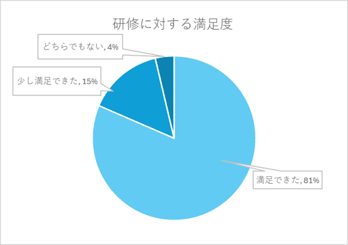 研修の満足度については、多くの社員が「満足できた」「少し満足できた」と回答し、高い関心と学びがあったことがうかがえました。