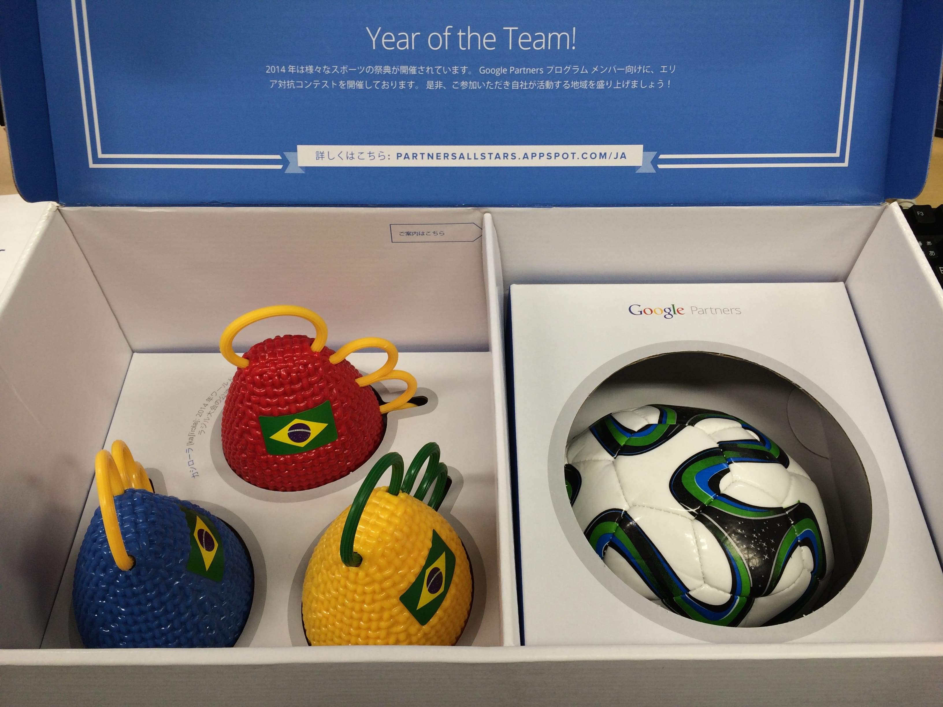 googleからサッカーボールとブラジルの楽器、カシローラが届きました。