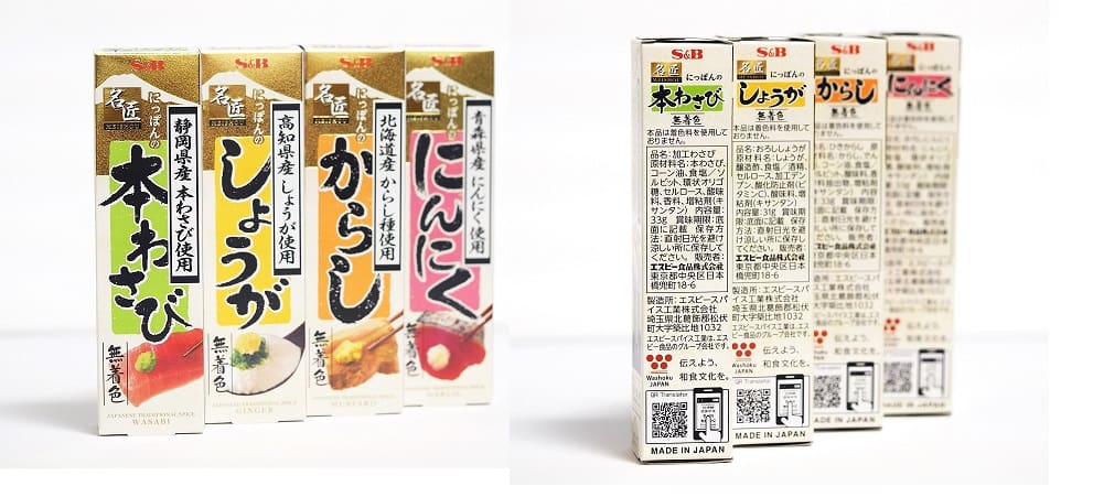 日本の食品として世界的に知られているものとしては、広末涼子とジャン・レノ主演の映画タイトルにもなった「わさび(WASABI)」があります。近年、日本の食文化が世界的にも注目を集めている中、エスビー食品が発売したチューブ入り香辛料の最高級タイプ「名匠シリーズ」でそのパッケージにQR Translatorが採用されました。